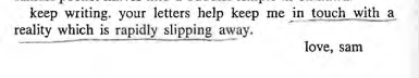 relationship with the other, makes for an element of unpredictability, despite the imposed language. It is not so much the reference to the character of Sam Melville that gives Letters from